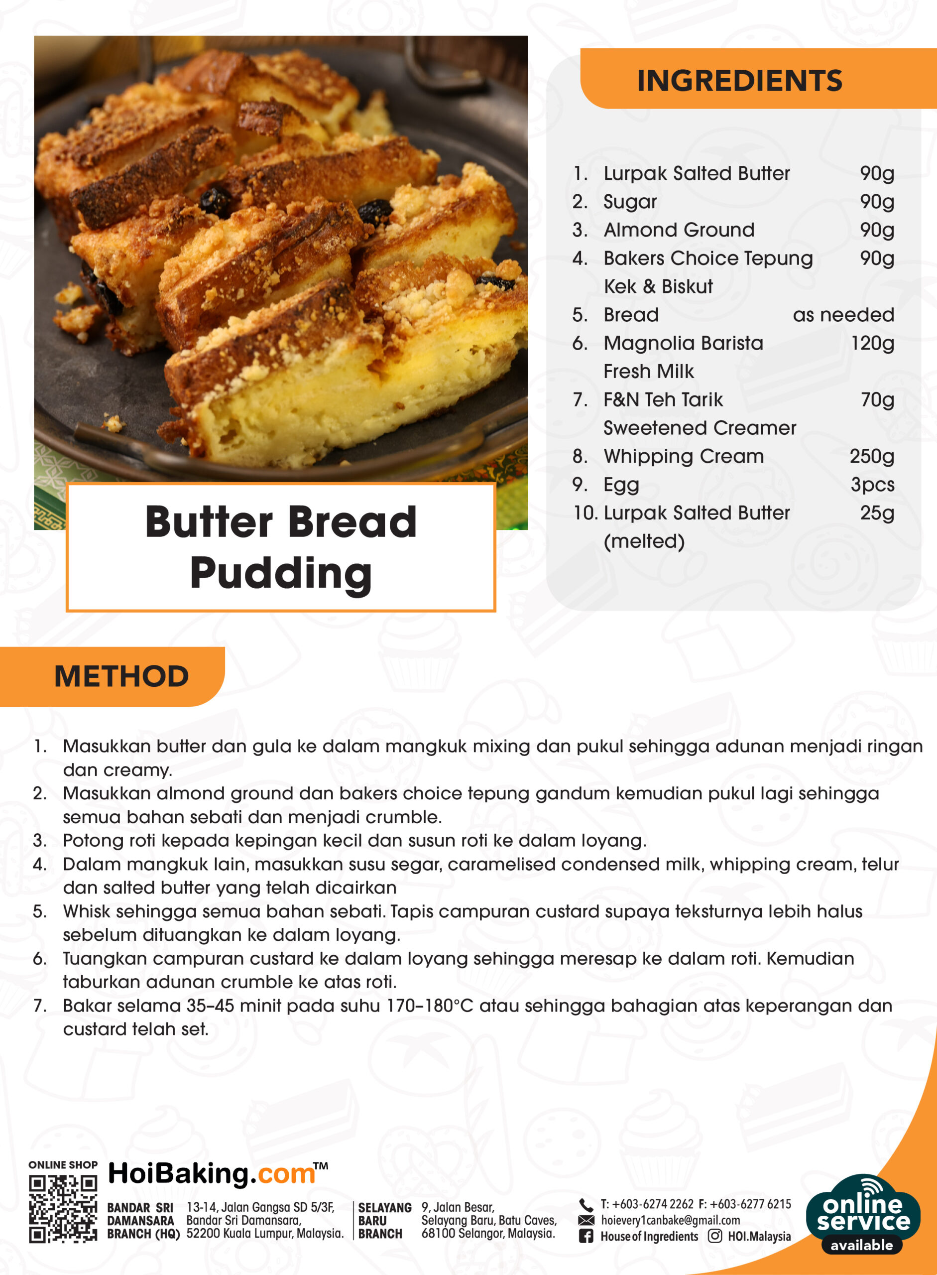 7. Bakar selama 35-45 minit pada suhu 170-180°C atau sehingga bahagian atas keperangan dan custard telah set.