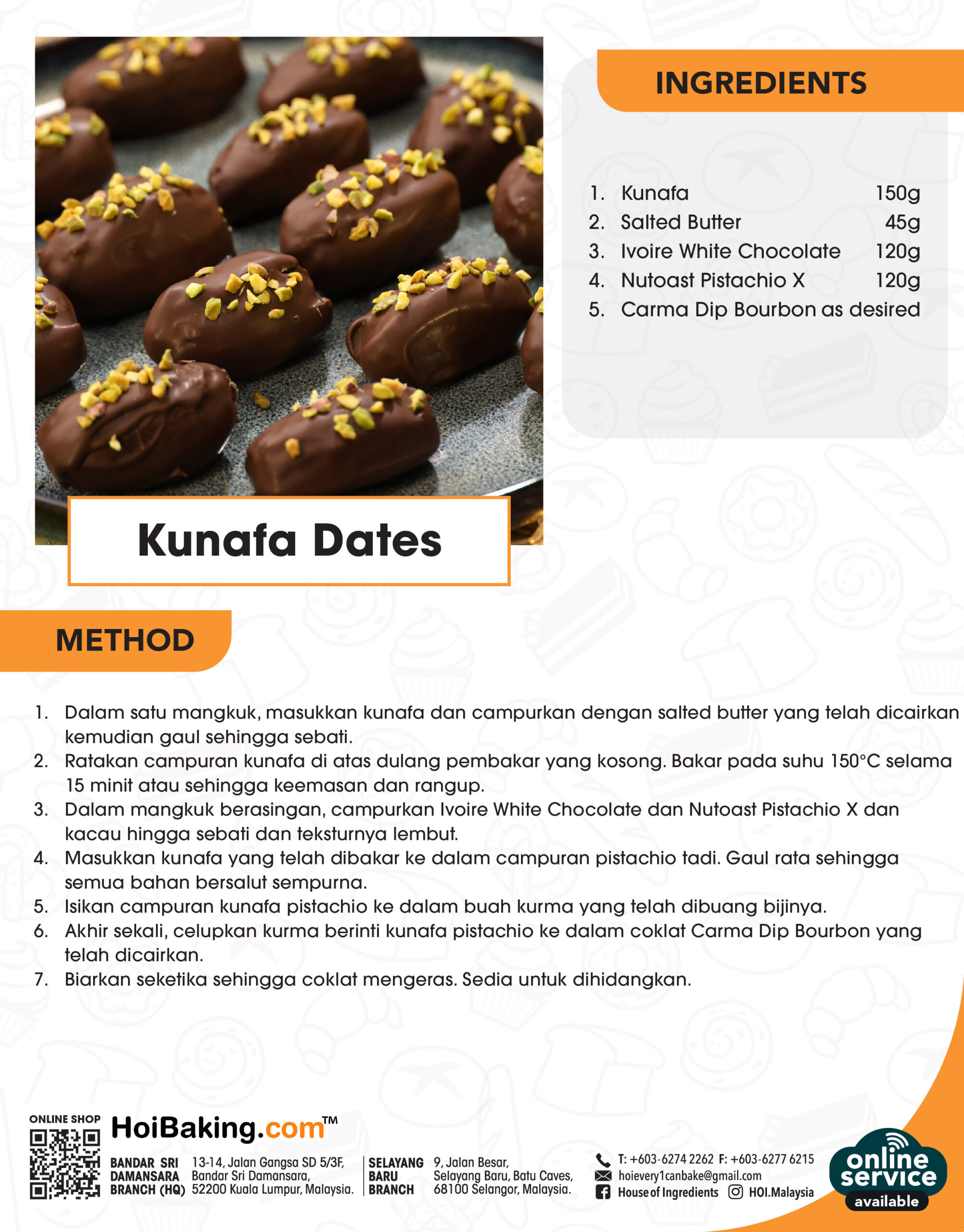 6. Akhir sekali, celupkan kurma berinti kunafa pistachio ke dalam coklat Carma Dip Bourbon yang telah dicairkan.