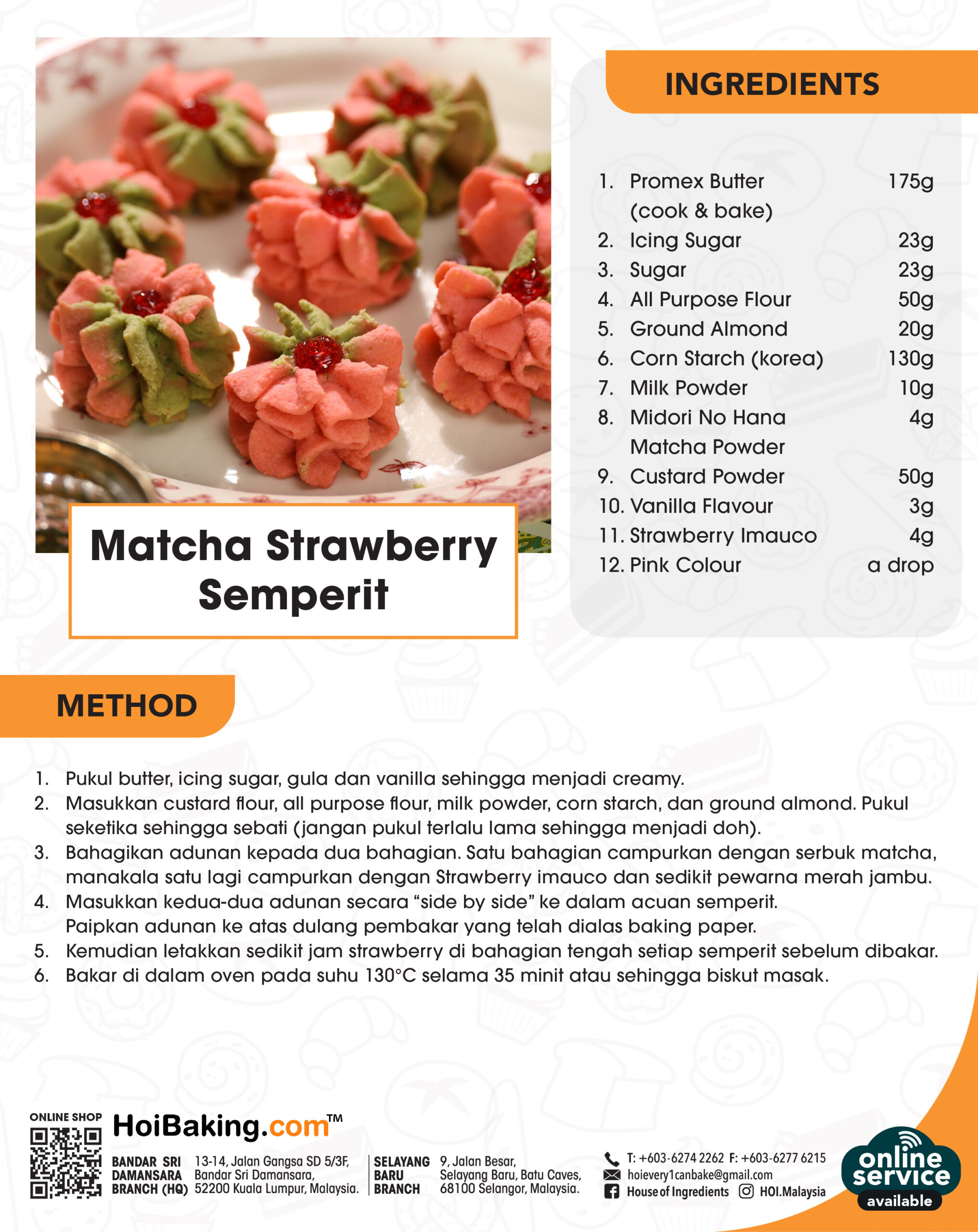 3. Bahagikan adunan kepada dua bahagian. Satu bahagian campurkan dengan serbuk matcha, manakala satu lagi campurkan dengan strawberry imauco dan sedikit pewarna merah jambu.