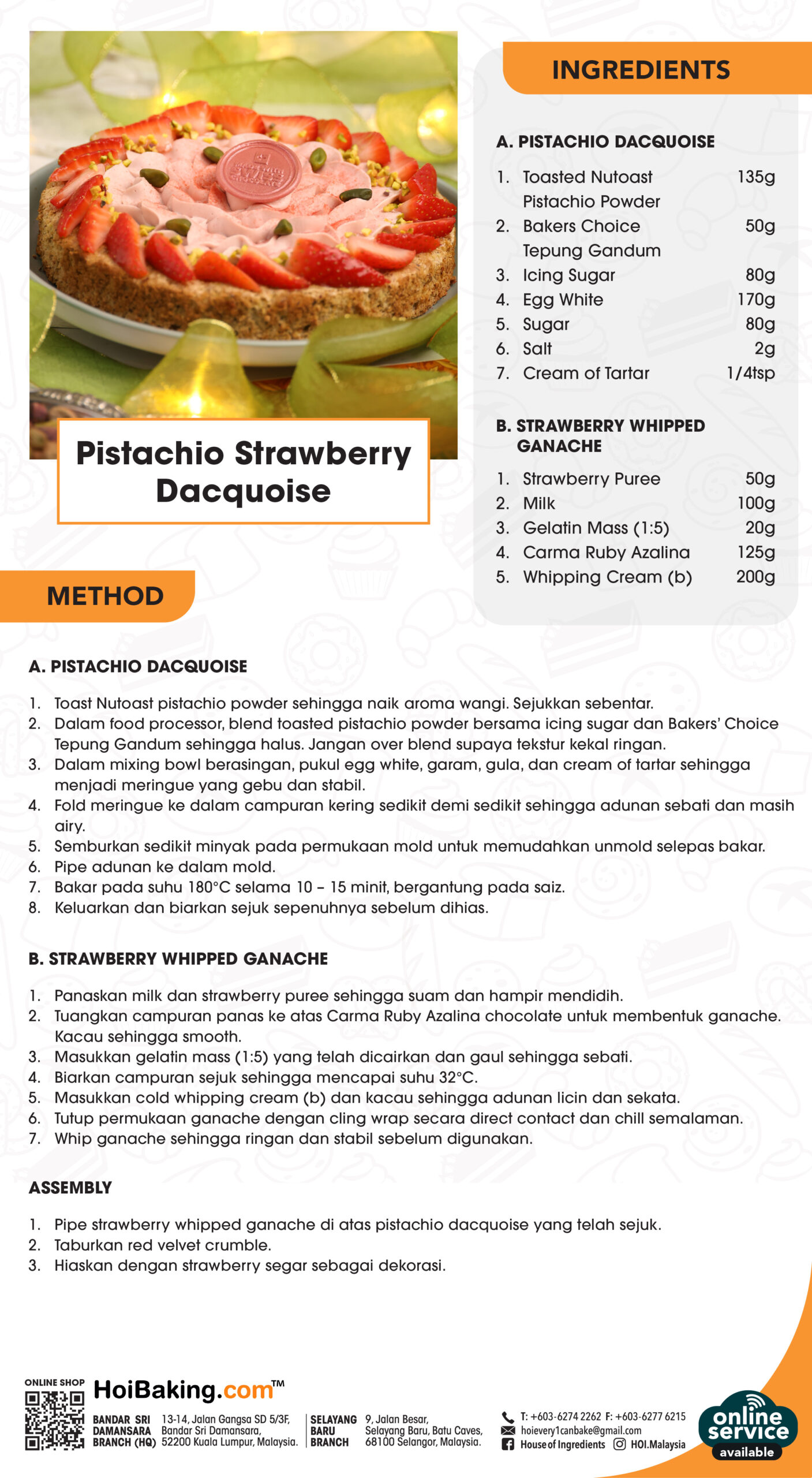 1. Pipe strawberry whipped ganache di atas pistachio dacquoise yang telah sejuk.