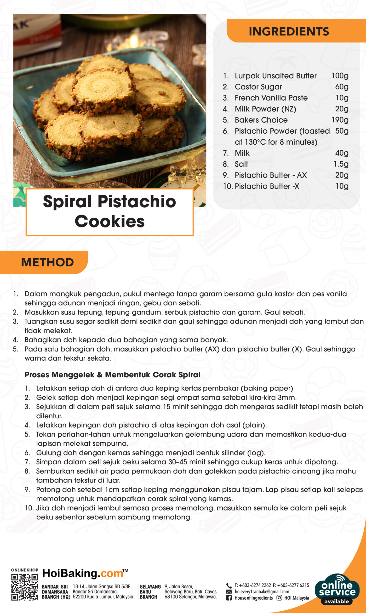 • Pistachio Powder (toasted at 130°C for 8 minutes) 50g